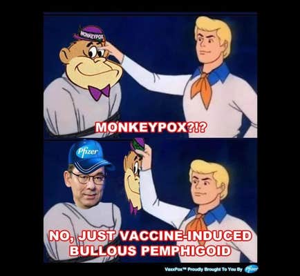Posts in the group falsely claim that the monkeypox cases are actually caused by COVID vaccines, and that pharmaceutical companies are behind it.