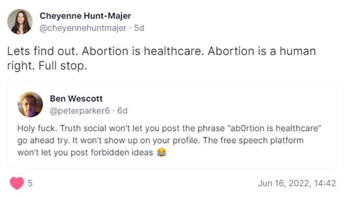 A few days later, Hunt-Majer made a TikTok about Truth Social vanishing her post about reproductive rights.