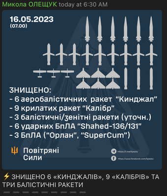 The findings were also repeated by the Air Force of the Armed Forces of Ukraine, whose Telegram channel is listed at the bottom corner of the graphic. Yet the version on the Telegram channel for the Ukrainian Air Force clearly states "SuperCam," not "SuperCum."