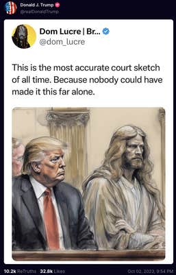 The post ‘A new low’: Trump shares courtroom sketch of himself on trial next to Jesus appeared first on The Daily Dot.