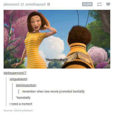 Bee Movie memes first found an audience on Tumblr. This happened in December 2012, five years after the movie premiered to lukewarm reviews (it only scored 50 percent on Rotten Tomatoes).