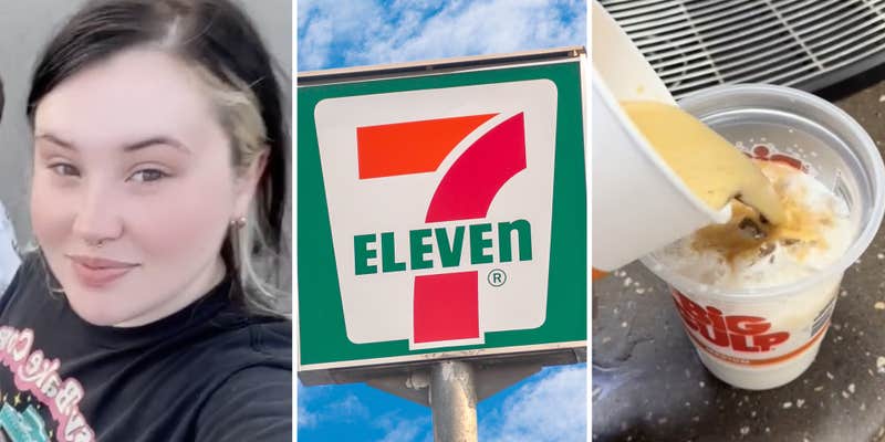 "POV: getting iced coffee from 7/11 like I'm in a convenience store in Korea," @breadandfranki recently wrote in a text overlay on the video. The beginning of the clip starts with Franki filling their cup up with ice. They then grab a caramel-flavored coffee creamer and begin pouring it into the Big Gulp cup, and then another, and then another, and then another.