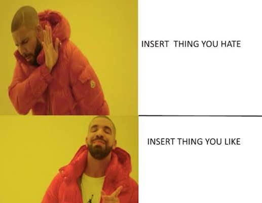 The most common iteration is a 2-panel reaction meme where the first features a still of Drake dancing, looking like he dislikes something, and the second is him in another pose, liking something else quite a bit.