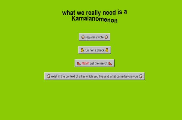 On July 22nd, the day after Joe Biden announced he’d be dropping out of the race, Redditor dalvikcache took credit for buying the domain coconut.vote—a brat / web 1.0—themed Kamala Harris landing page with quick links to register to vote, donate to the Harris campaign, buy official merch, or simply flood the screen with coconut emojis.